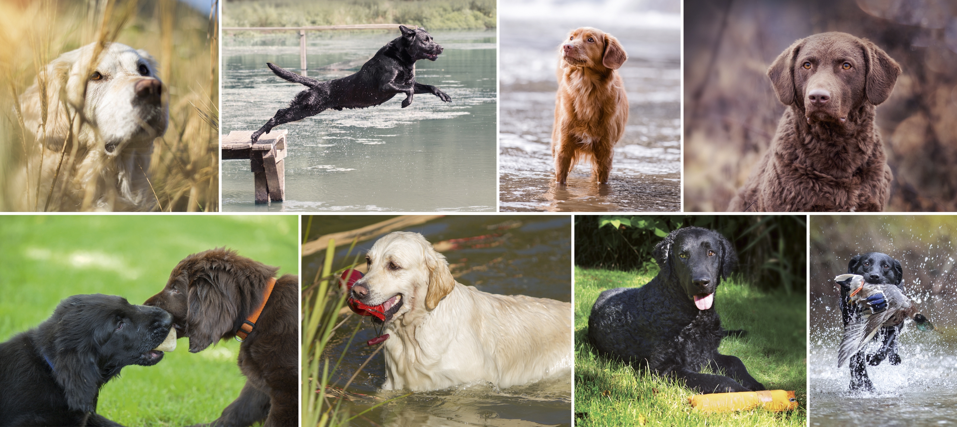 Welpen- und Junghundekurse, Grundgehorsam, retrieverspezifische Dummyausbildung, Alltagstraining, Kinderkurs oder Show-Handling. Normalerweise trainieren wir in Kleingruppen (bis zu 5 Hunde), Sie können aber natürlich auch Einzeltrainings vereinbaren. Darüberhinaus organisieren wir für unsere Mitglieder, neben den unterschiedlichsten Prüfungen, auch Seminare, Trainings mit externen Trainern oder Treffen.